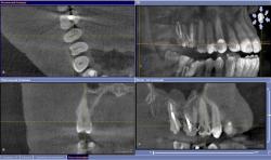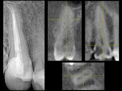 | Рис. 75 Обтурация корневых каналов, данные томограммы и 3D диагностики |