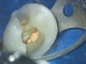 Смотрите видео: промывание медиального щечного канала (моляр) → появление пузырьков из медиального язычного канала |